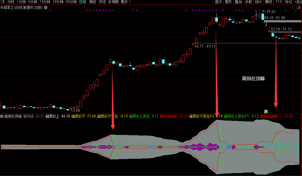 这个【离别在顶峰】副图指标是筹码类基础指标,看起来很简单,但指标的不断优化改进就是由简入繁、由易到难的过程,每一个基础指标都是指标创作的源泉,也许能给你带来不一样的体验和启发。