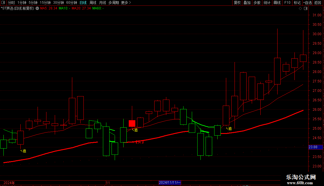 DRAWTEXT(CROSS(BF3,AF3) AND H>中中顶 AND H>中顶,H*1.03,'↙【逃】'),COLORGREEN;