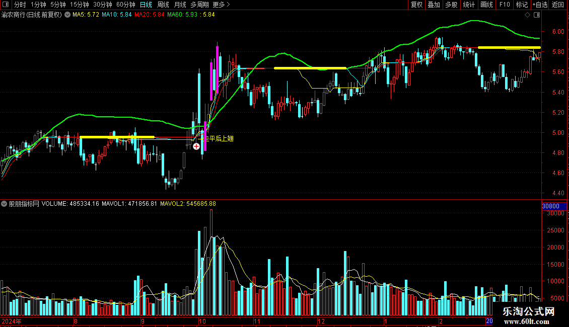 该主图指标用于捕捉平台突破后的波段买入机会。股价经过一段横盘整理后,若强势突破原平台,常会快速拉升。随后价格整理形成新平台,再次突破时将迎来新一轮上涨。