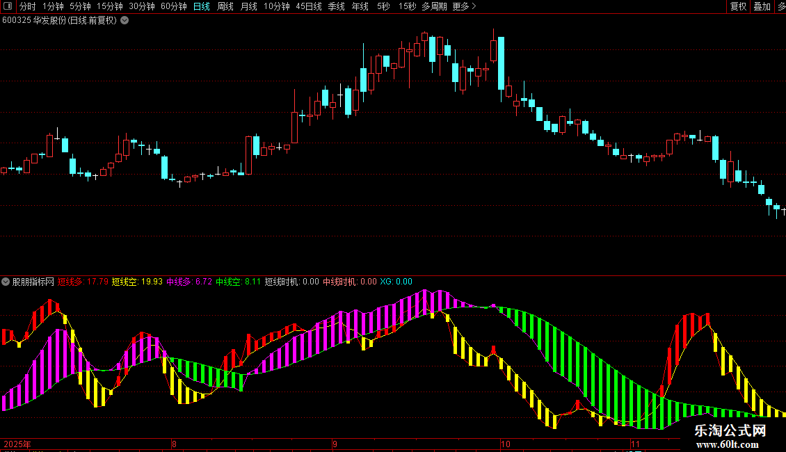 中长期:=100*(C-LLV(L,20))/(HHV(C,20)-LLV(L,20)),COLORMAGENTA;