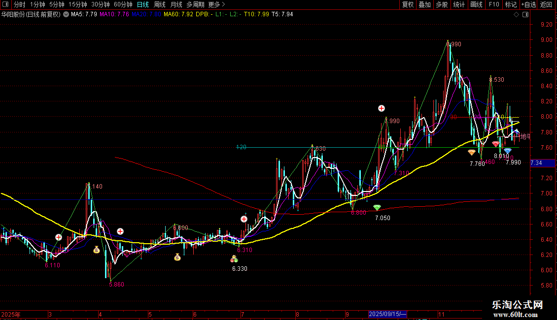 当满足条件到最后交易的周期=N60时,在T60位置书写文字,COLOR00BB00