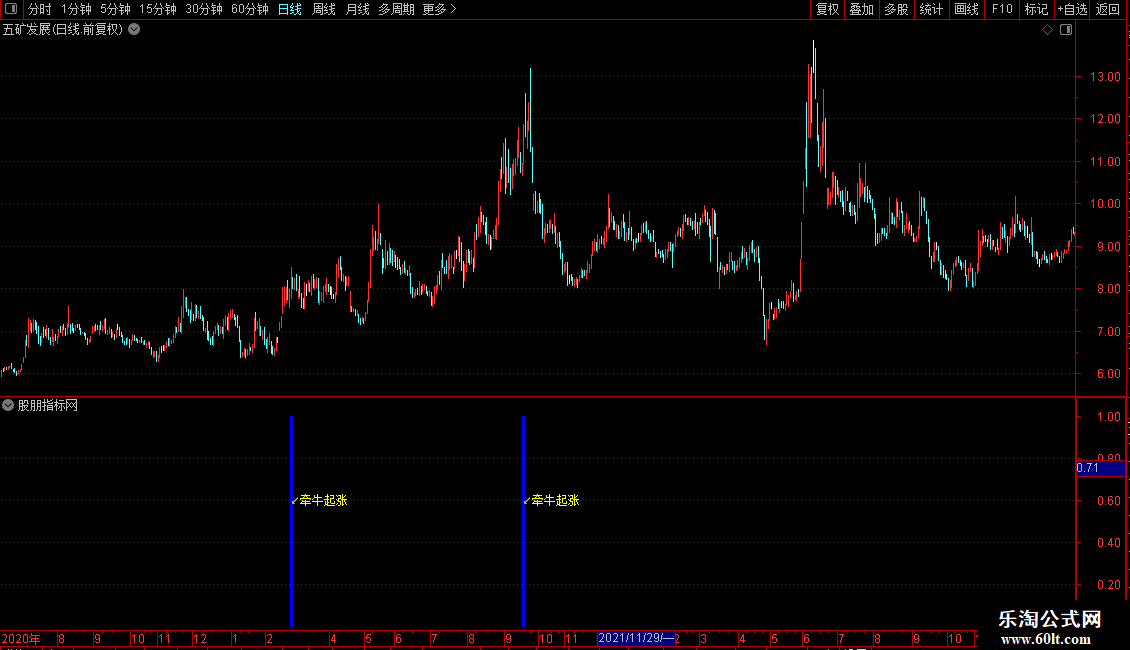 使用方法:在通达信副图中加载该公式,红色柱状线与“↙牵牛起涨”文字同时出现时,视为短期买入信号,可结合成交量放大或其他指标验证,提高操作胜率。本战法适合中短线波段操作,需严格遵循信号执行。