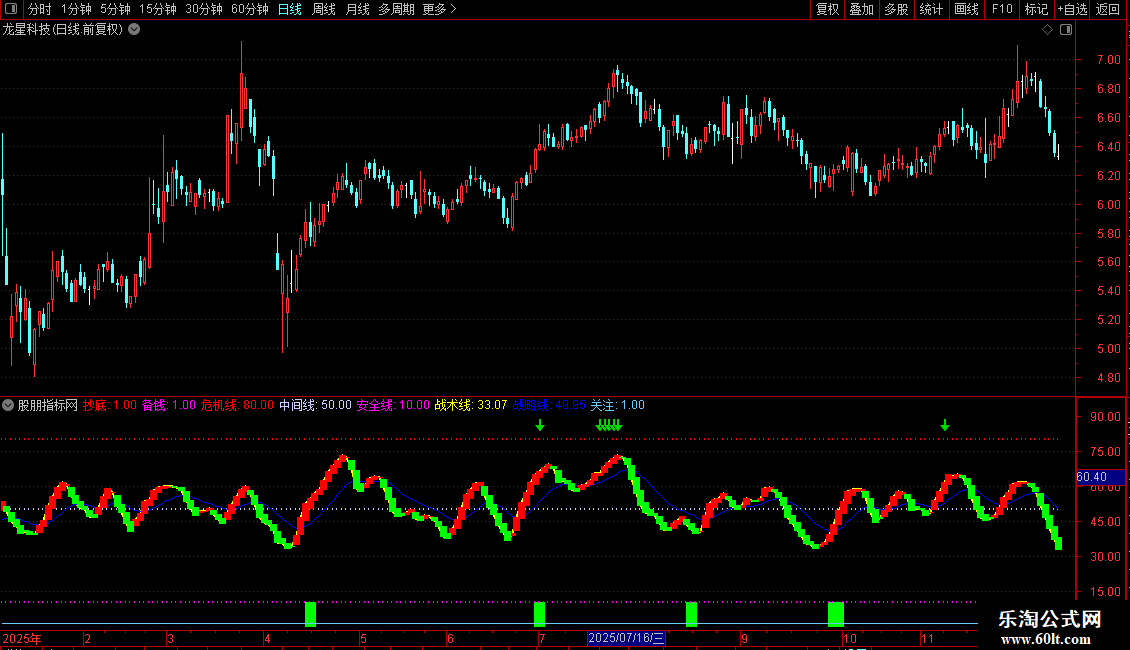 短线逃顶:=IF(I,0,1),COLORGREEN;