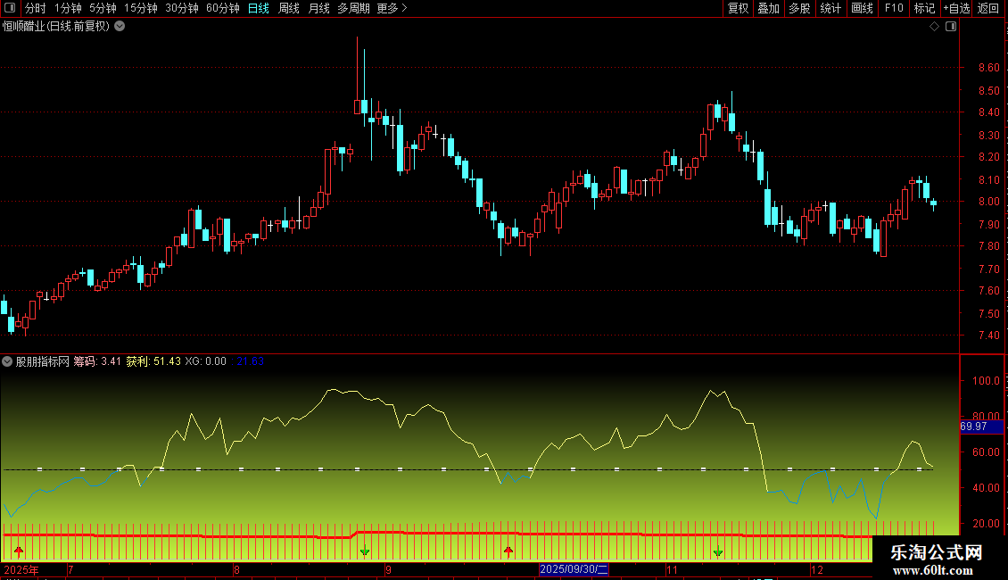 指标主要结合筹码分布、价格位置、均线系统和量价关系,用于判断市场强弱与潜在买卖点。通过分析成本集中度与获利盘比例,识别主力控盘程度;同时利用多周期均线、支撑压力线及特殊K线形态,辅助捕捉低位反弹或突破机会。当出现黄色柱状标记或“3成仓”提示时,视为阶段性低吸信号,适合轻仓介入;而ZIG转向图标则提示短期趋势拐点,可用于波段操作参考。