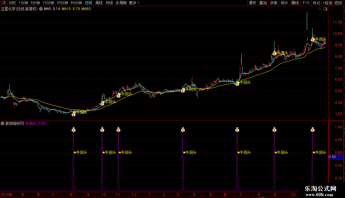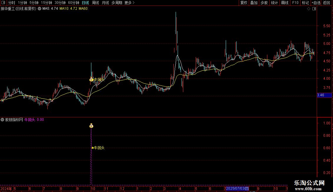 可视化提示清晰直观:主图与副图同步标注牛回头标识,无需紧盯指标,界面直观清晰。指标不含未来函数,信号可靠。