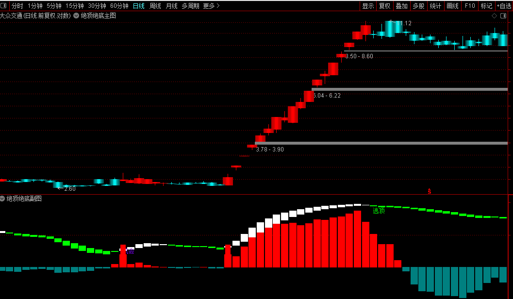通达信【绝顶绝底】主副/选股指结合趋势动能与超买超卖状态潜在买卖点源码