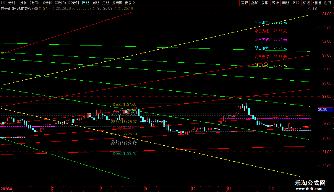 通达信威廉江恩〖角度线组合〗支撑压力划线主图源码