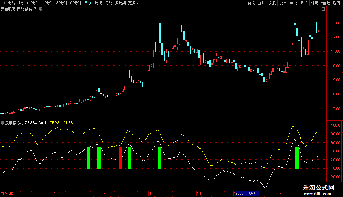 指标通过彩色柱状图直观显示信号: