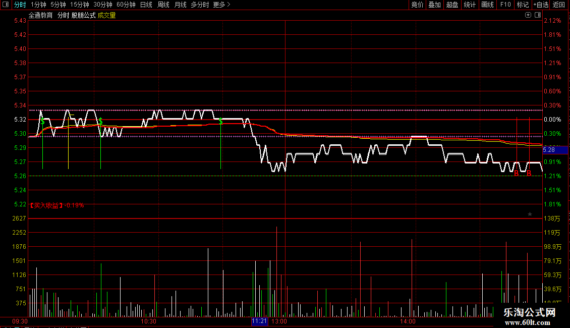 分时启动:=C;ZBGS突破1:HHV(H,480),DOTLINE,COLORRED;STICKLINE(FILTER(CROSS(C,REF(ZBGS突破1,1)),10) AND C>REF(ZBGS突破1,1),C*0.99,C,8,0),COLORGREEN;DRAWTEXT(FILTER(CROSS(C,REF(ZBGS突破1,1)),10) AND C>REF(ZBGS突破1,1),C*0.99,''),COLOR0080FF;现价:C,COLORWHITE,LINETHICK2;均价11:SUM(C*V,240)/SUM(V,240),COLORRED,LINETHICK2;TT:=BARSCOUNT(C); 前高:=REF(HHV(H,TT),1); 突破:=CROSS(C,REF(HHV(H,TT),1)) AND C/均价11< 1.09 AND TT>1 AND TT< 240;主力扫盘:=COUNT(突破,13)>=3 AND CROSS(C,REF(HHV(H,TT),1));DRAWTEXT(主力扫盘,前高, '←'),COLORYELLOW;已主力扫盘:=BARSLAST(主力扫盘)< 13;全仓买进:=CROSS(C,REF(HHV(H,TT),1)) AND HHVBARS(VOL,TT)=0 AND C/均价11< 1.09 AND TT>1 AND TT< 240 AND BARSLAST(主力扫盘)>=20;DRAWTEXT(全仓买进 ,前高, '←全仓'),COLORCYAN;分时追踪2:=DYNAINFO(4)>0 AND HHV(HIGH,2)/LLV(LOW,2)< 1.25 AND REF(分时启动,1)< LLV(LOW,3)+(HHV(HIGH,3)-LLV(LOW,3))*0.85;分时追踪9:=EMA(分时启动,2);分时追踪10:=EMA(分时启动,3);分时追踪11:=MAX(分时追踪9,分时追踪10); X2:=分时启动>分时追踪11 AND 分时追踪2 AND (分时启动>REF(HHV(HIGH,2),1) AND (分时启动-REF(分时启动,1))/REF(分时启动,1)>0.015) AND (V/CAPITAL<=0.2) AND C/REF(C,1)< 1.07; NX:=MA(((SLOPE(C,20)*5)+C),10); B1:=HOUR=09 AND MINUTE=45;B20:=LLV(L,15);B30:=BARSLAST(B1);B4:=REF(B20,B30);B5:CONST(B4),COLORFF80FF,CIRCLEDOT,LINETHICK2; C1:=HOUR=09 AND MINUTE=45;C2:=HHV(H,15);C3:=BARSLAST(C1);C4:=REF(C2,C3);C5:CONST(C4),COLORFF80FF,CIRCLEDOT,LINETHICK2; DIF:=EMA(分时启动,12)-EMA(分时启动,26);DEA:=EMA(DIF,9);MACD10:=(DIF-DEA)*2;AA0:=MACD10>00 AND DIF>0 AND DEA>0; A100:=HOUR=10 AND MINUTE=0;A20:=HHV(H,30);A30:=BARSLAST(A100);A40:=REF(A20,A30); A50:=CONST(A40);A80:=分时启动>A50 AND REF(C<=A50,1) AND 分时启动>NX;AB:=FILTER(A80,100);A90:=DYNAINFO(3);AC:=分时启动<=A90*1.04 AND 分时启动>A90;量比:=V/REF(MA(V,5),1);ZBGS突破:=AA0 AND AB AND AC AND A40>A90 AND 量比>=1;DRAWICON(ZBGS突破,A50,23);DRAWTEXT(FILTER(CROSS(C,REF(ZBGS突破,1)),10) AND C>REF(ZBGS突破,1),C*0.995,''),COLORYELLOW;分时追踪4:=分时启动;分时追踪5:=(分时启动-REF(分时启动,5))/REF(分时启动,5);BAB1:=STICKLINE(分时追踪5>0,DYNAINFO(3),DYNAINFO(3)*(1+分时追踪5),0.1,0);BAB2:=STICKLINE(分时追踪5< 0,DYNAINFO(3),DYNAINFO(3)*(1+分时追踪5),0.1,0);分时追踪6:=分时启动/DYNAINFO(3);分时追踪7:=FILTER(分时追踪5>0.015 AND 分时追踪5>REF(分时追踪5,1)*2 AND VOL>REF(VOL,1)*2 AND 分时启动>REF(分时启动,1) OR 分时追踪5>0.025,240);DRAWICON(分时追踪7 AND 分时追踪6< 1.06 AND 分时启动>DYNAINFO(3),C,23);DRAWICON(分时追踪7 AND 分时追踪6< 1.06 AND 分时启动>DYNAINFO(3),C,1);DRAWTEXT(分时追踪7 AND 分时追踪6< 1.06 AND 分时启动>DYNAINFO(3),C,' ')COLORGREEN;H1:=MAX(DYNAINFO(3),DYNAINFO(5));L1:=MIN(DYNAINFO(3),DYNAINFO(6));P1:=H1-L1;阻力:L1+P1*8/9,COLORLIRED,DOTLINE;支撑:L1+P1*0.5/9,COLORGREEN,DOTLINE;DRAWTEXT(LONGCROSS(支撑,C,2),C-0.01,' '),COLOR0000FF;分时捉妖1:=V*C/100;分时捉妖2:=SUM((IF(((分时捉妖1/8>20) AND (分时启动>(REF(分时启动,1)))),分时捉妖1,0)),0);分时捉妖3:=SUM((IF(((分时捉妖1/8>20) AND (分时启动< (REF(分时启动,1)))),分时捉妖1,0)),0);分时捉妖4:=SUM((IF(((分时捉妖1/8< 20) AND (分时启动>(REF(分时启动,1)))),分时捉妖1,0)),0);分时捉妖5:=SUM((IF(((分时捉妖1/8< 20) AND (分时启动< (REF(分时启动,1)))),分时捉妖1,0)),0);主力买盘:=(分时捉妖2); 主力卖盘:=(分时捉妖3);散户买盘:=(分时捉妖4); 散户卖盘:=(分时捉妖5); ZBGS1:=HIGH-REF(HIGH,1);ZBGS2:=REF(LOW,1)-LOW;ZBGS3:=EMA(IF(ZBGS1>0 AND ZBGS1>ZBGS2,ZBGS1,0),28);ZBGS4:=EMA(IF(ZBGS2>0 AND ZBGS2>ZBGS1,ZBGS2,0),28);ZBGS5:=EMA(ZBGS3/TR,28);ZBGS6:=EMA(ZBGS4/TR,28);ZBGS7:=EMA((分时启动+HIGH+LOW)/3,2);ZBGS8:=MAX(DYNAINFO(3),EMA(DYNAINFO(5),5));ZBGS9:=MIN(DYNAINFO(3),EMA(DYNAINFO(6),5));ZBGS10:=(COST(95)+DYNAINFO(11))/2;ZBGS11:=(COST(5)+DYNAINFO(11))/2;ZBGS12:=CONST((ZBGS8+ZBGS10)/2);ZBGS13:=CONST((ZBGS9+ZBGS11)/2);ZBGS14:=(ZBGS12+ZBGS13)/2;ZBGS15:=ZBGS13+ZBGS14-ZBGS12;ZBGS16:=(ZBGS13+ZBGS15)/2;ZBGS17:=(ZBGS15+ZBGS16)/2;ZBGS18:=(EMA(分时启动,24)-EMA(分时启动,52))*4+ZBGS14;ZBGS19:=EMA(ZBGS18,18);MCD:=(ZBGS18-ZBGS19)*2+ZBGS14,NODRAW,COLORYELLOW;ZBGS20:=3*SMA((分时启动-LLV(LOW,54))/(HHV(HIGH,54)-LLV(LOW,54)),3,1)-2*SMA(SMA((分时启动-LLV(LOW,54))/(HHV(HIGH,54)-LLV(LOW,54)),3,1),3,1);ZBGS21:=MEMA(ZBGS20,10);ZBGS22:=EMA(ZBGS21,10);ZBGS23:=IF(EXIST(CROSS(ZBGS12,ZBGS7),5) AND EXIST(分时启动>ZBGS12,10) AND ZBGS21< HHV(ZBGS21,10) AND ZBGS22< REF(ZBGS22,1),1,0);ZBGS24:=IF(EXIST(CROSS(ZBGS7,ZBGS13),5) AND EXIST(分时启动< ZBGS13,10) AND ZBGS21>LLV(ZBGS21,10) AND ZBGS22>REF(ZBGS22,1),1,0);卖出:=ZBGS23=1 AND REF(ZBGS23,1)=0;DRAWICON(ZBGS23=1 AND REF(ZBGS23,1)=0,ZBGS12,8);DRAWICON(ZBGS24=1 AND REF(ZBGS24,1)=0,ZBGS13,7);STICKLINE(ZBGS23=1 AND REF(ZBGS23,1)=0,ZBGS12,ZBGS13,0,0),COLORGREEN; STICKLINE(ZBGS24=1 AND REF(ZBGS24,1)=0,ZBGS12,ZBGS13,0,0),COLORRED;PA2 :=BARSSINCE(卖出)+1;首次卖出价:=REF(C,PA2-1),NODRAW;卖出收益:(DYNAINFO(7)-首次卖出价)/首次卖出价*100,NODRAW,COLORGREEN;虎:= (EXPMA(分时启动,500)-REF(EXPMA(分时启动,500),1))/REF(EXPMA(分时启动,500),1)*100;DRAWICON(CROSS(EXPMA(虎,120)-0.0004,EXPMA(虎,200)),均价11,13);Q:=BETWEEN(C/(SUM(AMOUNT,BARSCOUNT(C))/SUM(VOL*100,BARSCOUNT(C))),1.05,0.95);Q2:=IF(Q=0,MA(C,BARSCOUNT(C)),(SUM(AMOUNT,BARSCOUNT(C))/SUM(VOL*100,BARSCOUNT(C))));YD:=DYNAINFO(3);{HTTP://}MM:=IF(C=DYNAINFO(4)*1.1 AND L=DYNAINFO(4)*1.1,H-YD,H-REF(C,1));M:=IF(MM>0,MM,0.0);SS:=IF(C=DYNAINFO(4)*0.9 AND H=DYNAINFO(4)*0.9,YD-H,REF(C,1)-L);S:=IF(SS>0,SS,0.0);HJ:=M+S;买入力度:=M/HJ*AMOUNT/CAPITAL;卖出力度:=S/HJ*AMOUNT/CAPITAL;N:=7.5;MMA30:=EMA(分时启动,30);强弱界定:=IF(PERIOD=0,EMA(分时启动,900),DRAWNULL),COLORWHITE,LINETHICK2;分时价量线:=SUM(C*V,240)/SUM(V,240),COLORYELLOW,LINETHICK1;实时涨幅限制:=(C/DYNAINFO(3)-1)*100;买卖力度:=SUM((买