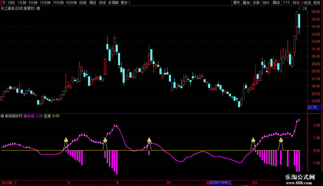 指标通过融合价格、成交量与资金成本,构建出多空趋势判断体系。核心逻辑是利用加权均价与指数移动平均的差值,识别主力资金动向及市场强弱。当指标显示“做多线”上行且主力强度柱状图出现时,视为多头信号;若个股价格显著高于其13日平均持仓成本,则判定为主力介入,发出“庄进”提示。策略上,投资者可结合“做多线”方向与“庄进”信号,择机布局强势股。