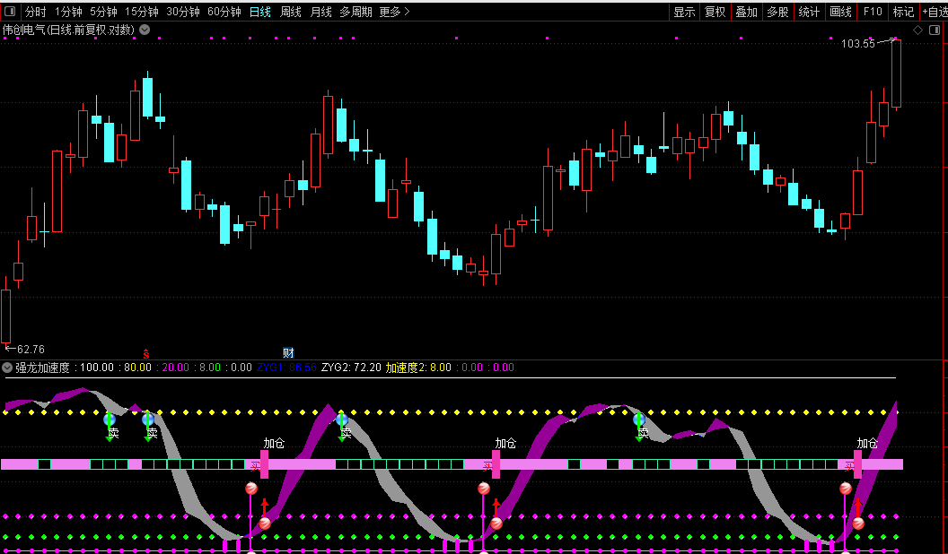 通达信【强龙加速度】副图/选股短期动量变化点短期趋势强度与买卖时机源码