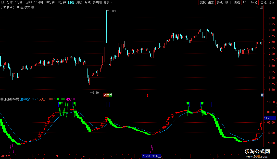 浪尖: STICKLINE(CROSS(VARD,VARC) AND VARC<VARD AND VARC>60,90,100,12,1),COLORBLUE;