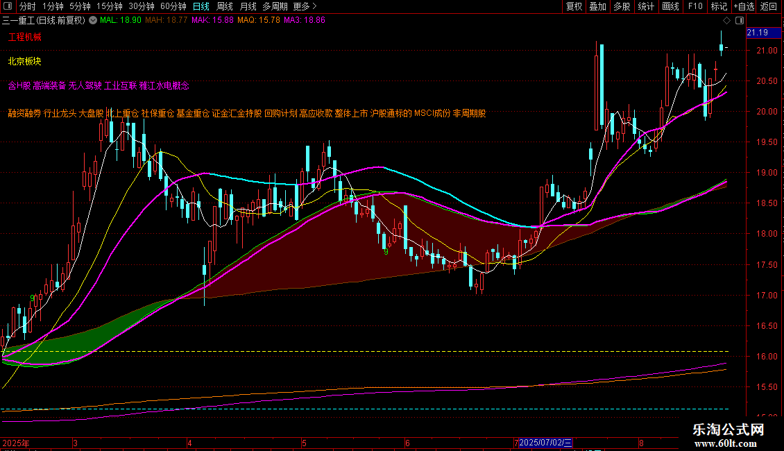 输出MA3:收盘价的60日简单移动平均,线宽为2,COLORFF00FF