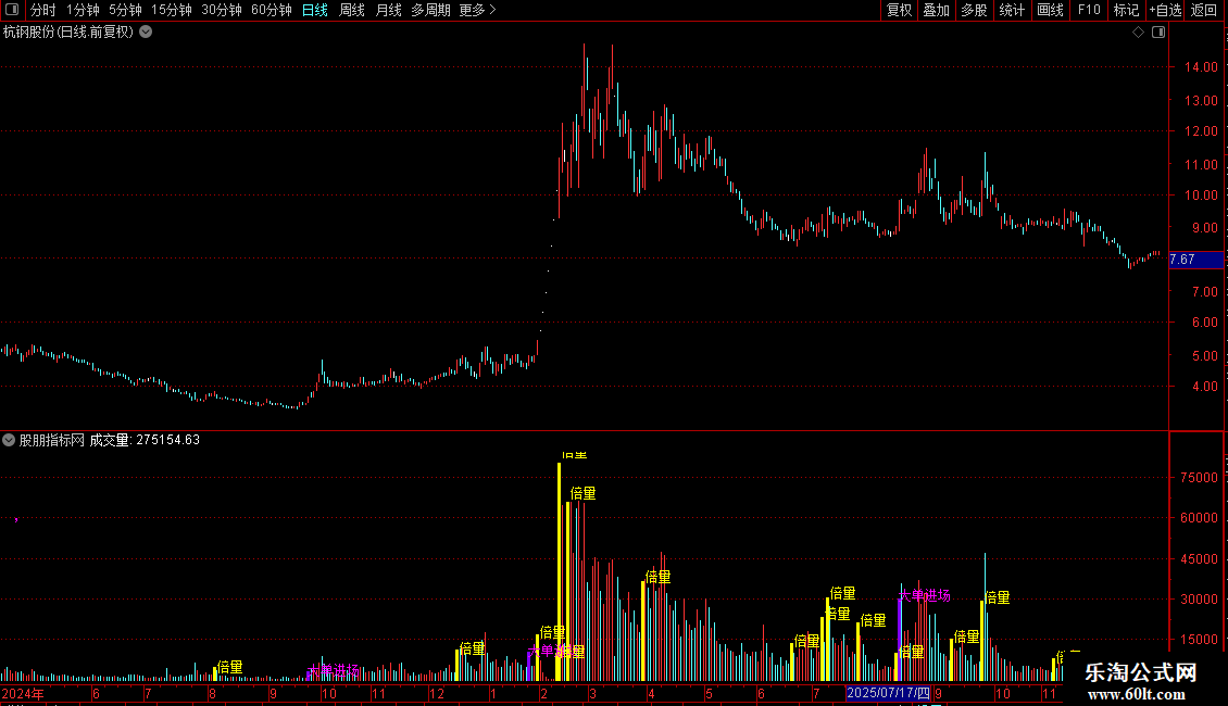 大单入场指标公式 倍量与大单入场双信号异动分析 附与副图