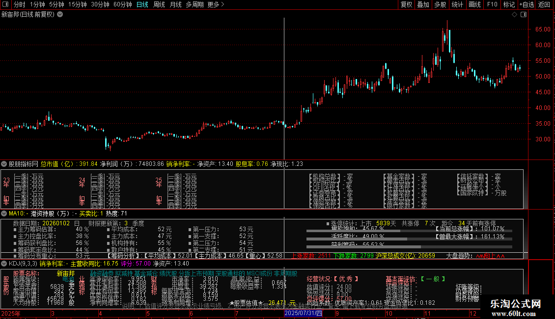 指标主要用于盘面综合分析,整合了港资持仓、市场热度、筹码结构、多空压力支撑位及大盘趋势等关键信息。通过可视化方式展示主力与散户的筹码分布、成本区间、获利比例,并结合量能饱和度和活跃度判断当前交易情绪。操作上,帮助投资者快速识别市场强弱状态、个股所处位置(高位或低位)、资金动向以及短期支撑压力区域,辅助判断入场或观望时机。