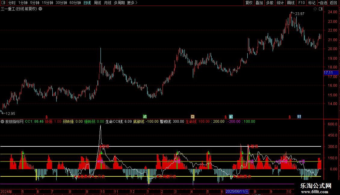 DRAWTEXT(CROSS(生命CCI线,警戒线),警戒线,'★警惕')COLORRED;