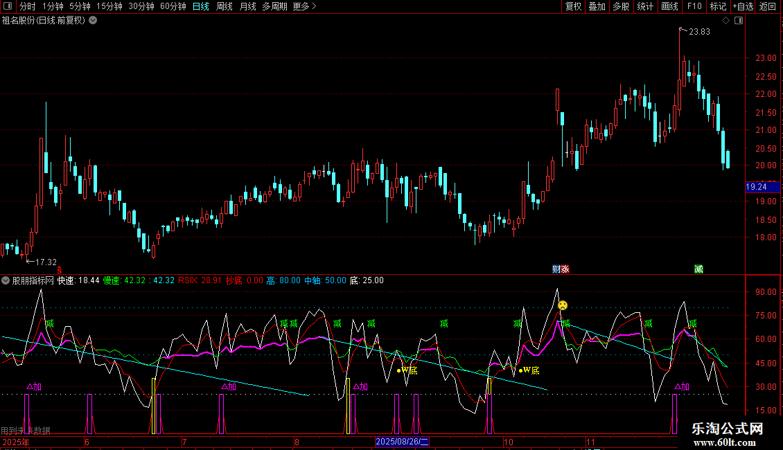W底1:=COUNT( CROSS(快速,25),15)>=2 AND 抄底=20;