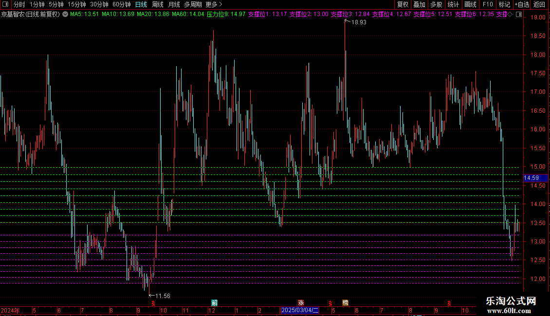 支撑位2:(DYNAINFO(3)/POW(X,6)),COLORMAGENTA,DOTLINE;