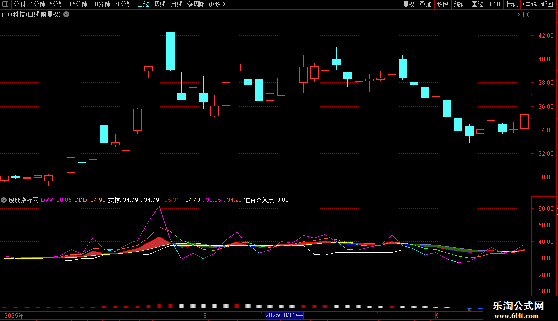 IF(DDD<=REF(DDD,1),DDD,DRAWNULL),COLOR33FF33,LINETHICK1;