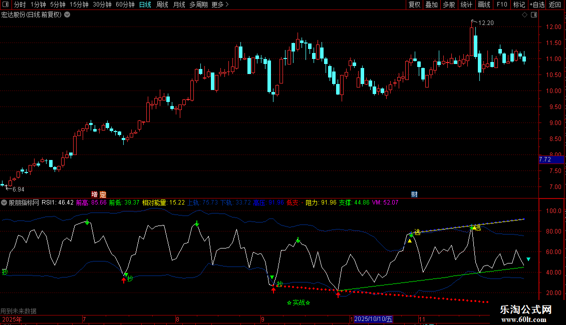 DRAWTEXT(CROSS(UPPER,RSI1),UPPER,'逃'),COLORYELLOW;
