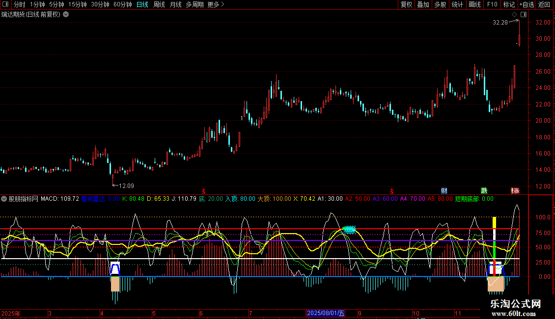 输出 平滑异同平均线: VAR6*5,COLORSTICK ,线宽为2