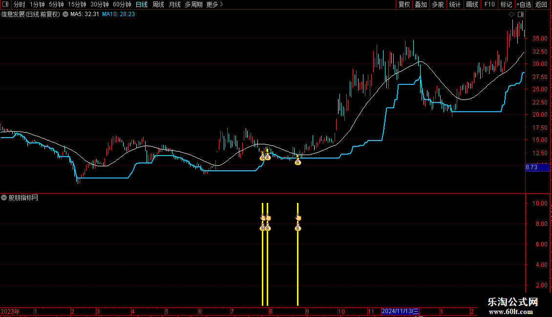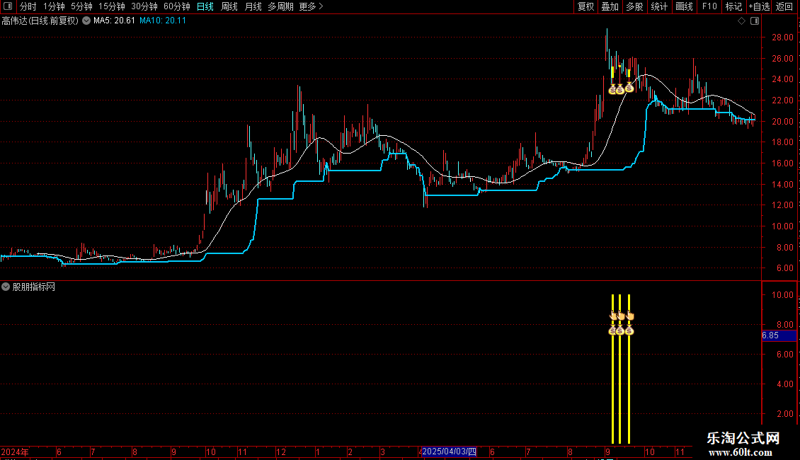 短期底部线:LLV(HIGH,30),LINETHICK2,COLORFFCC00;