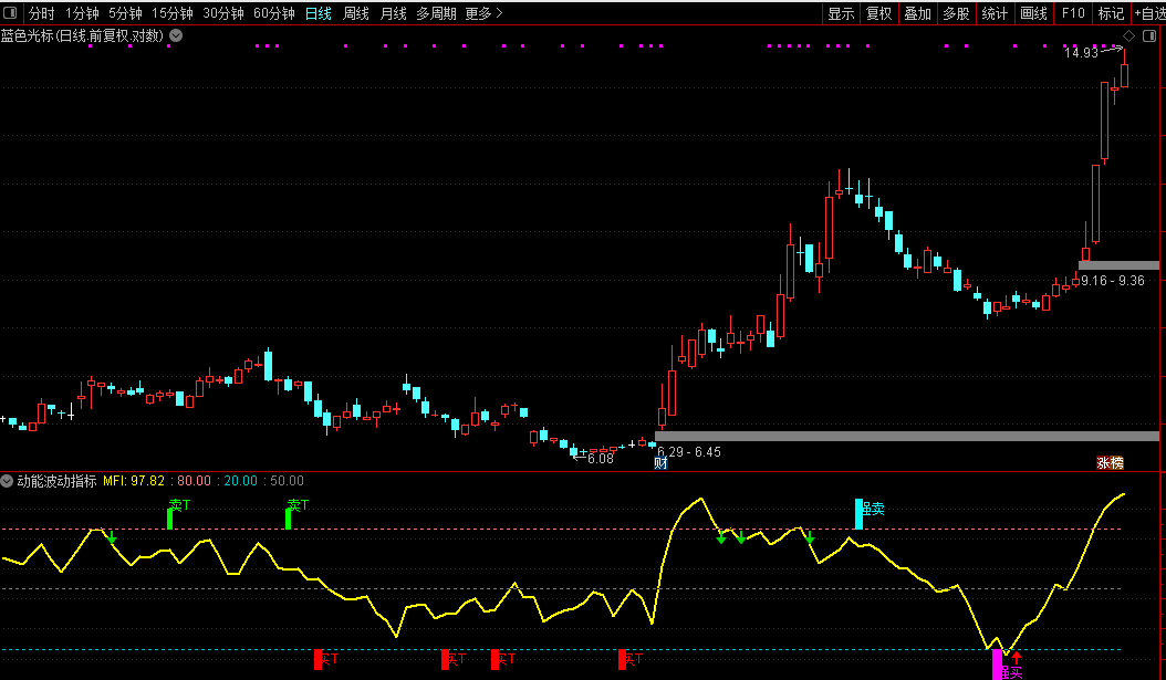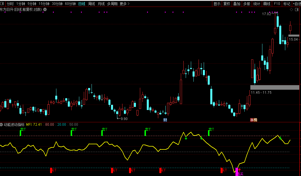 以资金流量指标(MFI)为核心,只有当价格上涨且成交量放大时,指标才会显著上升。这有效识别“虚涨”和“虚跌”,增加信号的真实性。