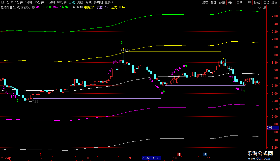 警告灯:IF(TJ,HIGH*1.008,DRAWNULL),CROSSDOT,LINETHICK2,COLORYELLOW;