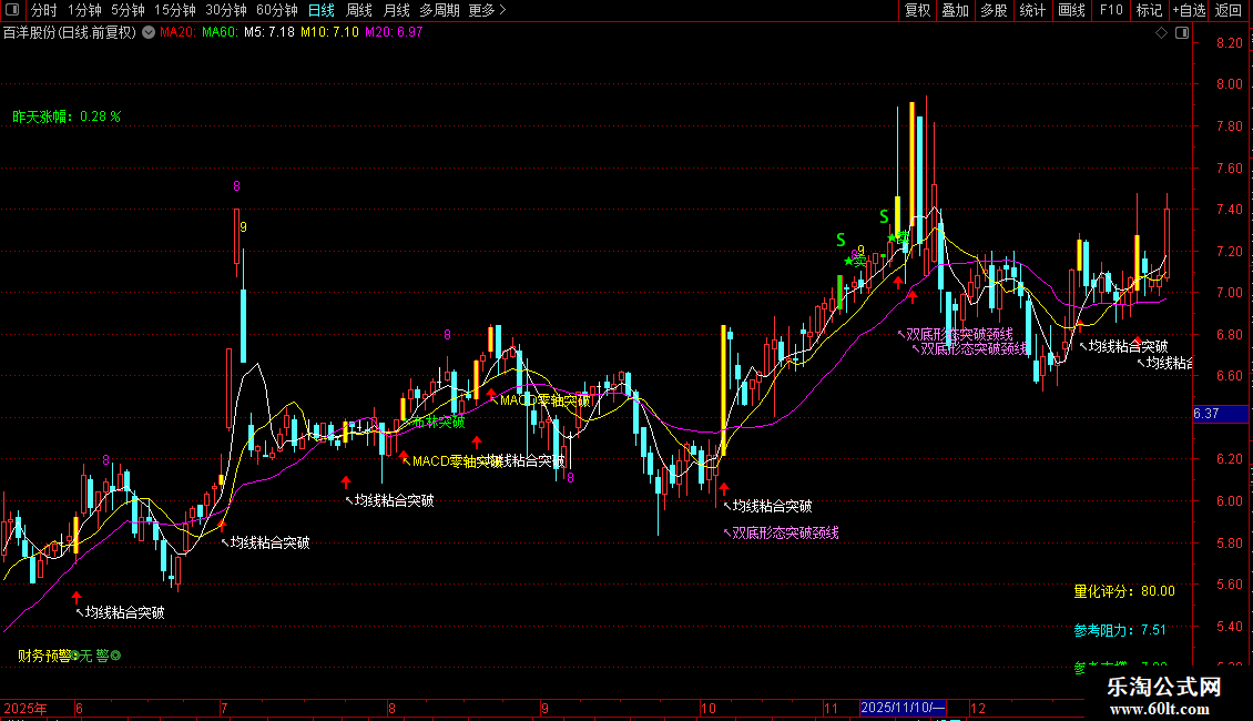 DRAWTEXT(VAR39 AND VAR40,L*0.94,'↖双底形态突破颈线'),COLORFF80FF;