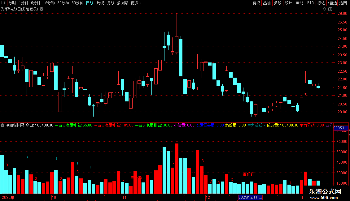 一百天低量排名:LOD(V,100),NODRAW,COLORGREEN;