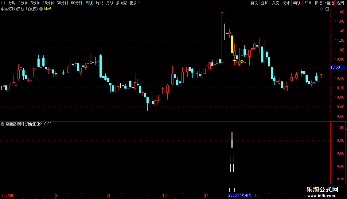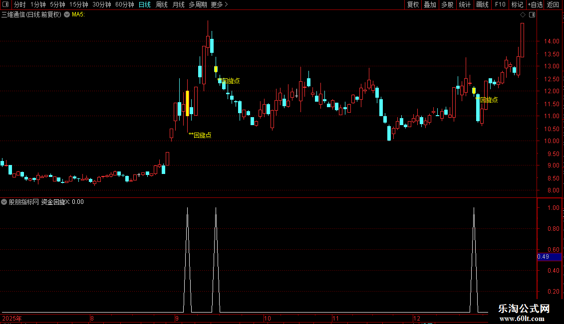 1. 资金回旋指标识别强势形态中的阴阳双线,预示资金短暂回撤后再度入场,这常是第二波拉升与反弹的关键标志。