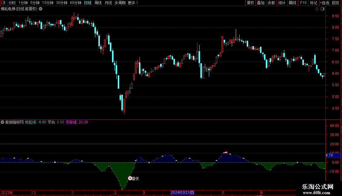 STICKLINE(核能线<=0,0,核能线,3,0),COLOR003300;
