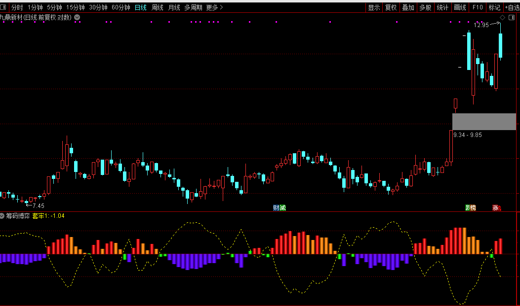 黄色虚线代表主力意图,下穿零轴代表有启动迹象。