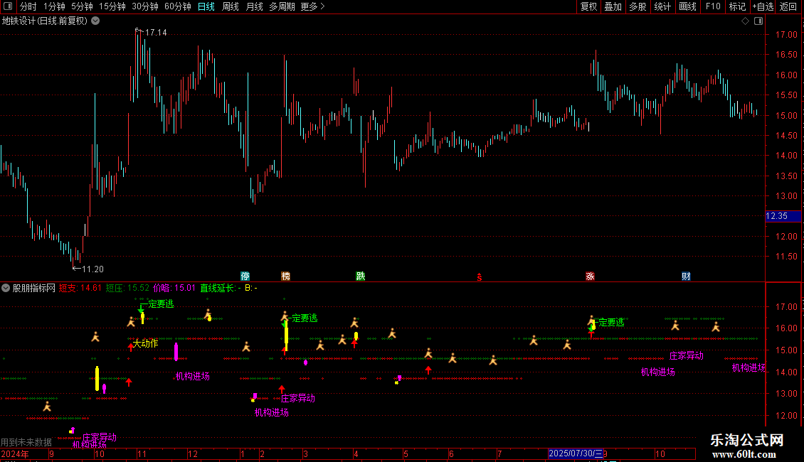 DRAWTEXT(VAR31 AND COUNT(VAR31,30)=1,LOW*0.95,'机构进场'),LINETHICK1,COLORFF00FF;
