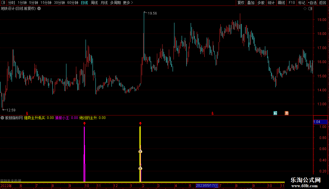 猎股小王:L<底部1 AND C<DSA AND 强势为王,COLORMAGENTA,LINETHICK2,LINESTICK;