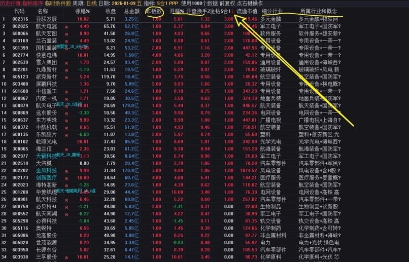 里面是5个竞价指标组合起来的共震,数值越大越好。