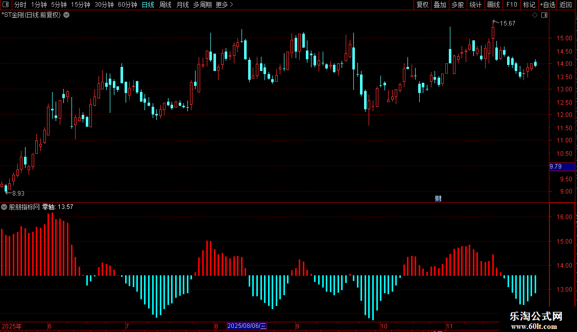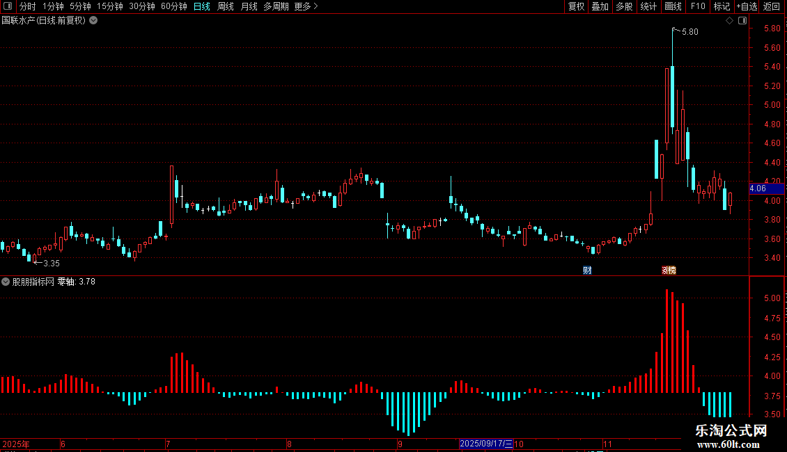 STICKLINE(MACDZ>0,MACDZ*4+零轴,零轴,1,0),COLORRED;