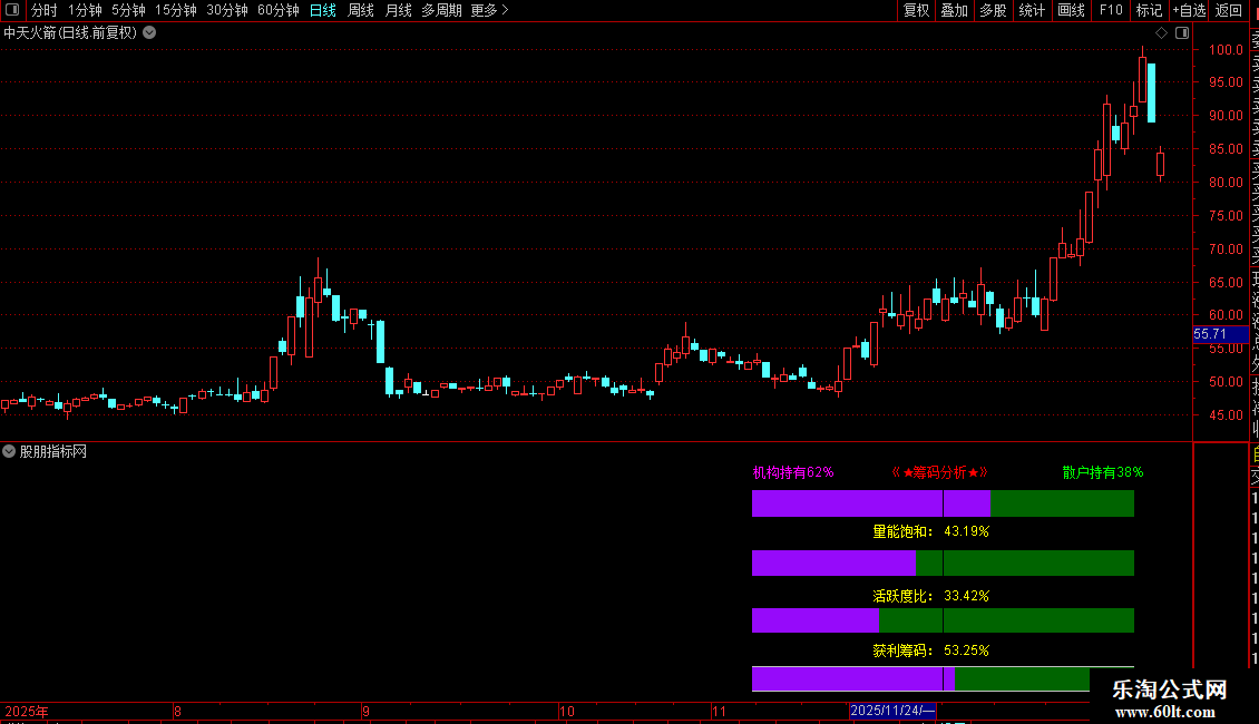 家人们是不是总看不懂筹码分布,搞不懂是“谁在买、谁在卖?”不知道当前筹码获利盘高不高?今天在这里云家就给家人们分享一个通达信版本的“筹码透市”指标,该指标把获利筹码占比、量能饱和度、交易活跃度、机构与散户的持仓占比等四大核心要点,用文字加进度条的方式,直观展示在屏幕右下角;有了这个指标后,家人们不用再去翻筹码峰指标,而是通过云家的“筹码透市”指标就能一眼就能看穿当前股价的筹码结构。