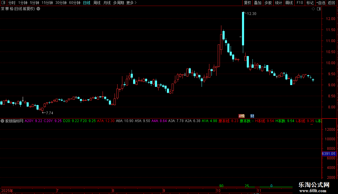 输出L本跌:如果到最后交易的周期<=XA_12+1的最后一日取值设为常数,返回如果L本线<1日前的L本线,返回L本线,否则返回无效数,否则返回无效数,画绿色
