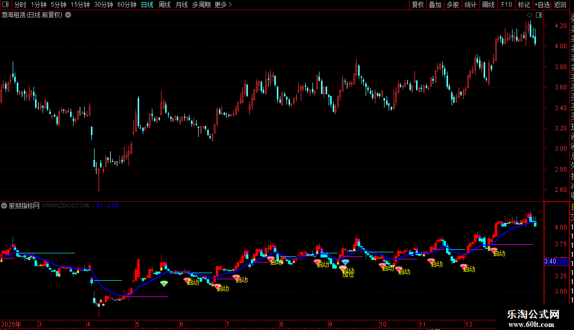 2. 信号识别:出现“启动”图标+文字,代表短期均线金叉且股价走强,可关注建仓;“进入”信号提示中期趋势转好,适合轻仓介入;“加仓”“突破”信号(突破480日高点)出现时,代表趋势确认突破,可加仓跟进;