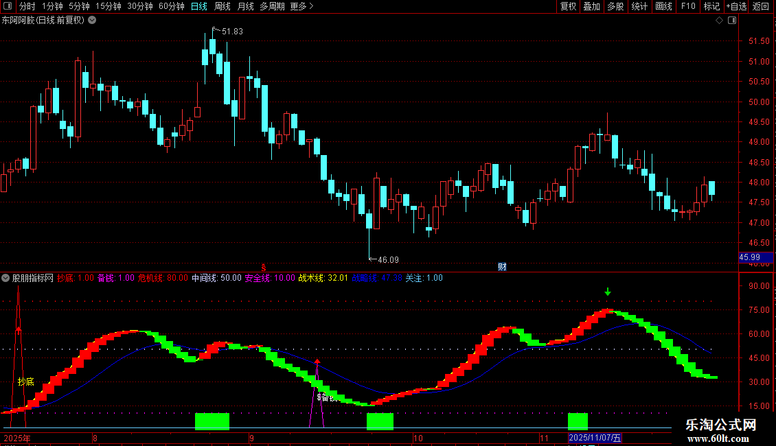 短线逃顶:=IF(I,0,1),COLORGREEN;