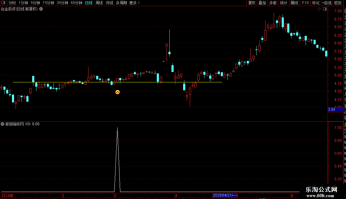 ZBGS37:=IF(CROSS(CLOSE,REF(ZBGS32,1)),REF(ZBGS32,1),0);