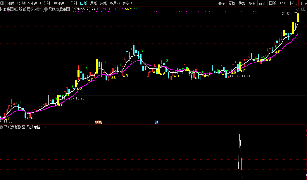 真正精髓在副图和选股公式里。它设定了多重苛刻条件:比如股价需站上所有关键均线(5日到120日),形成多头排列;近期要有放量动作;还得避免追高(要求前几日没有大涨)。简单说,它想抓的是那种“趋势已成、刚刚放量启动、且位置不算高”的潜力股,比如公式里提到的锋龙股份,就是符合这种技术形态的例子。