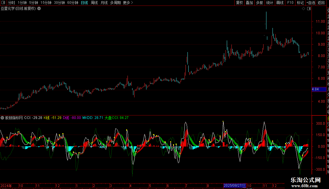 AA:=IF(crOSS(CCI,MAX(K,D)),CCI,DRAWNULL);