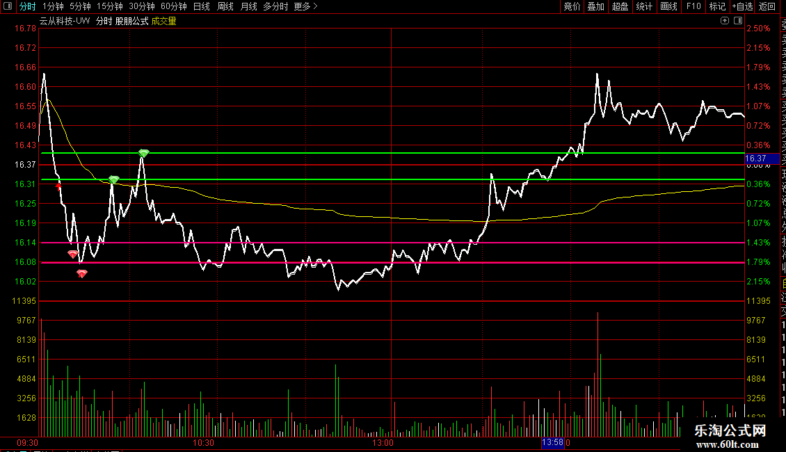 分时1:CONST(SUM(IF(VAR15,REF(C,1),DRAWNULL),0)),COLOR00FF00,LINETHICK2;