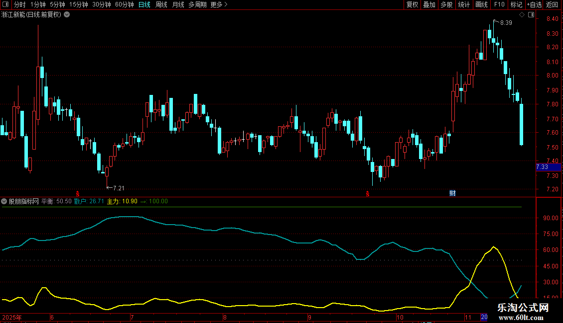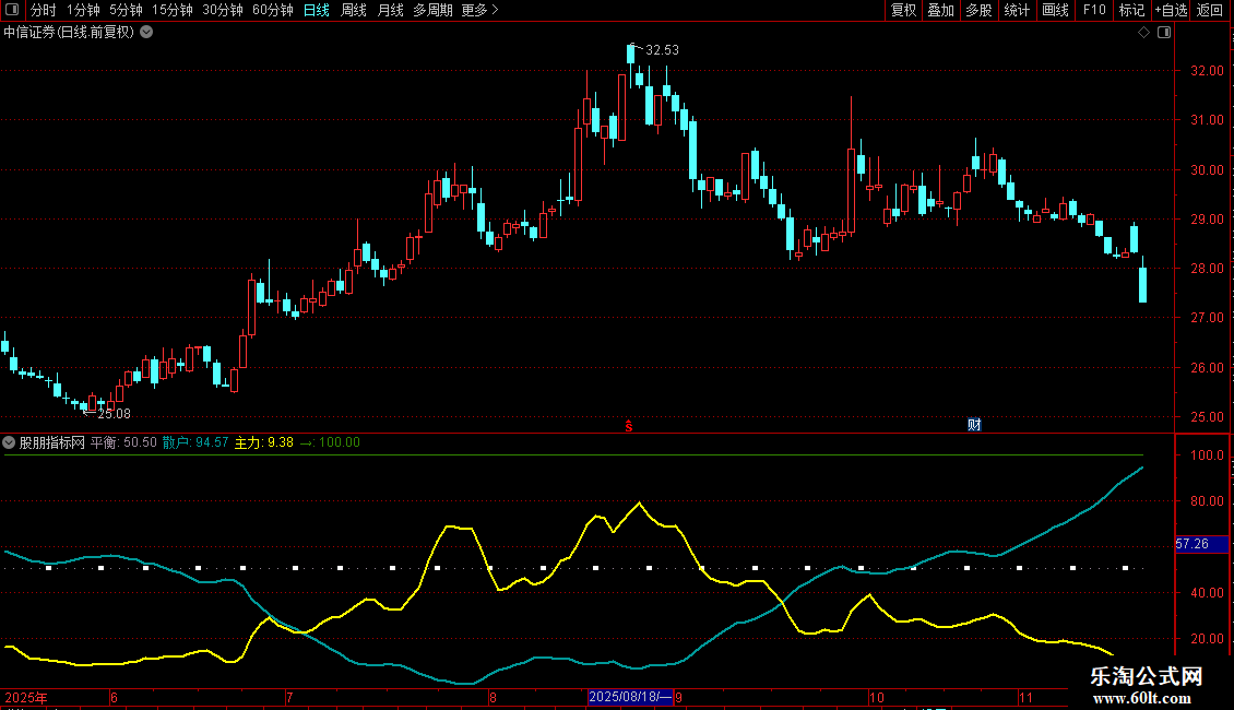 DRAWICON(CROSS(主力,散户) AND 主力>50,平衡,25);