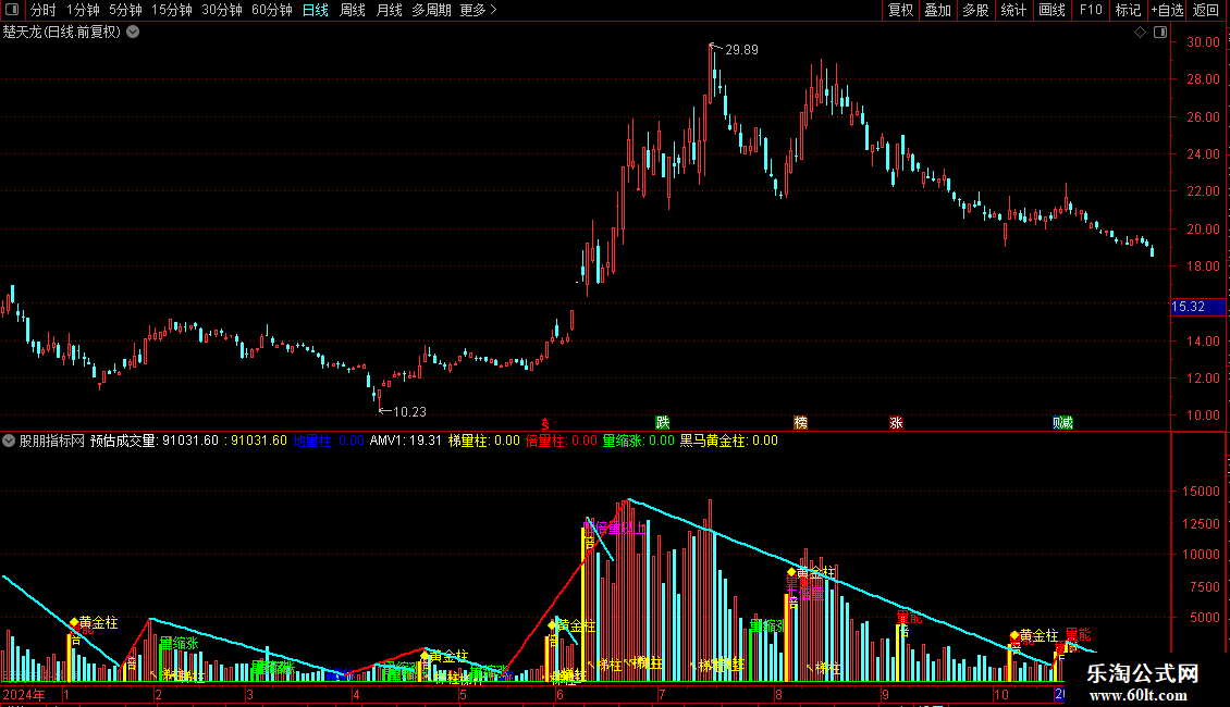 DRAWTEXT(梯量柱,VOL*0.1,'↖梯柱'),COLORYELLOW;