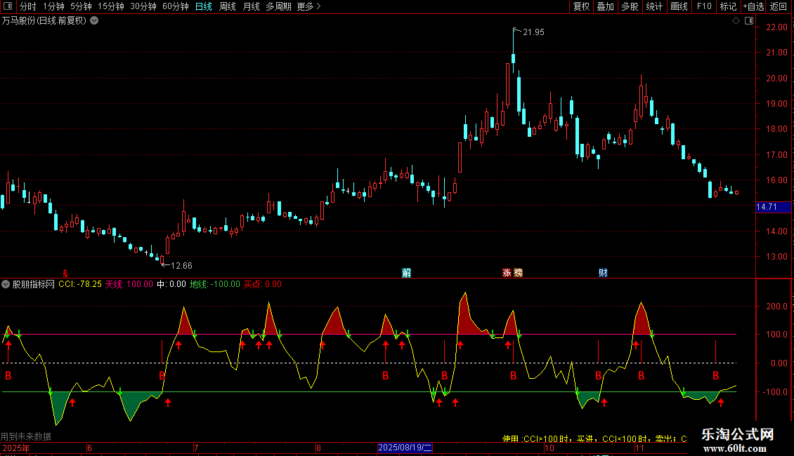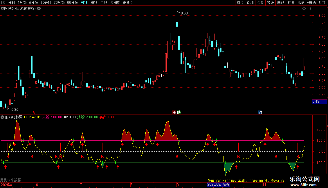 DRAWTEXT(CURRBARSCOUNT=45,-400/1.5,'使用 :CCI>100 时,买进,CCI<100 时,卖出;