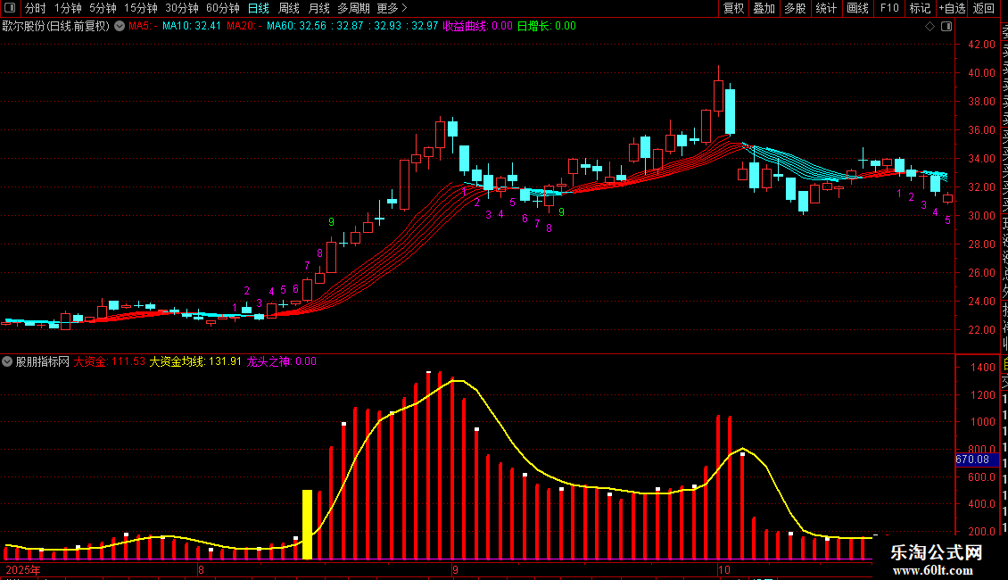 大资金均线:MA(ZBGS2,5),COLORYELLOW,LINETHICK2;