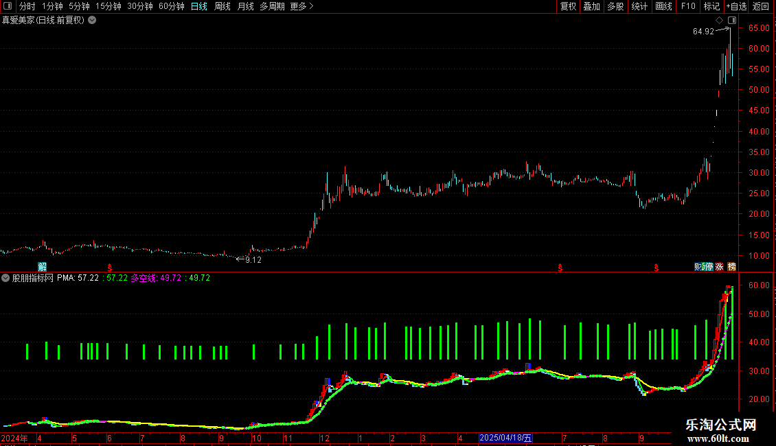 IF(A,多空线,DRAWNULL),COLOR33FF33,POINTDOT,LINETHICK4;